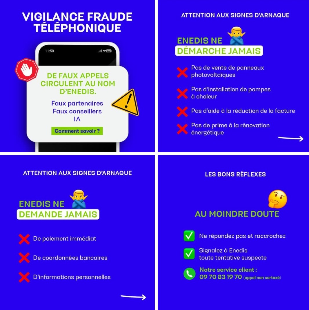 Enedis appelle ses clients à la plus grande vigilance et rappelle que :